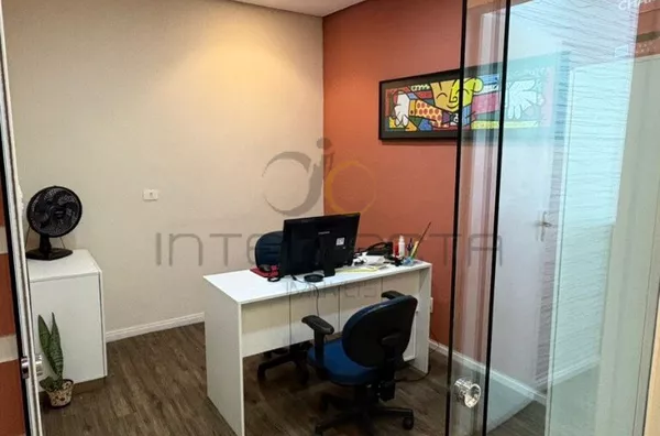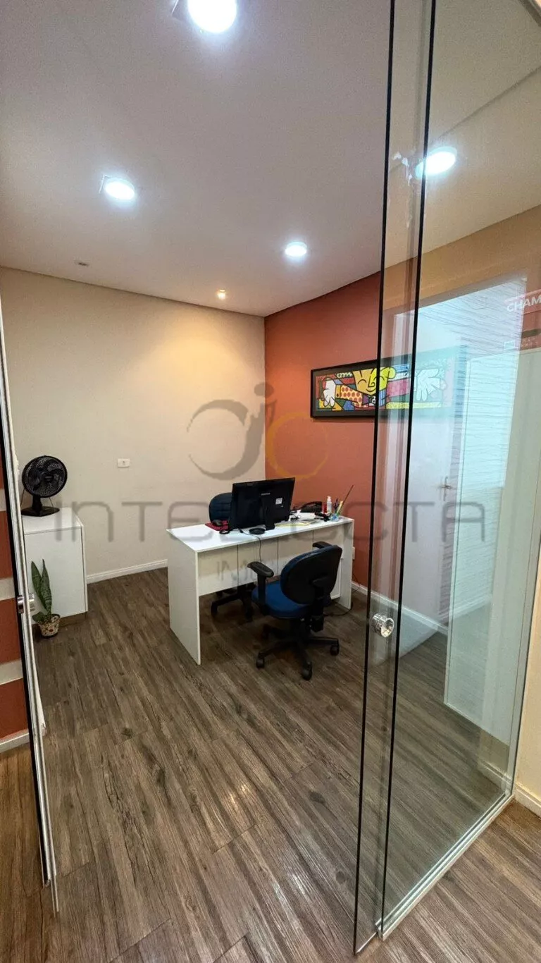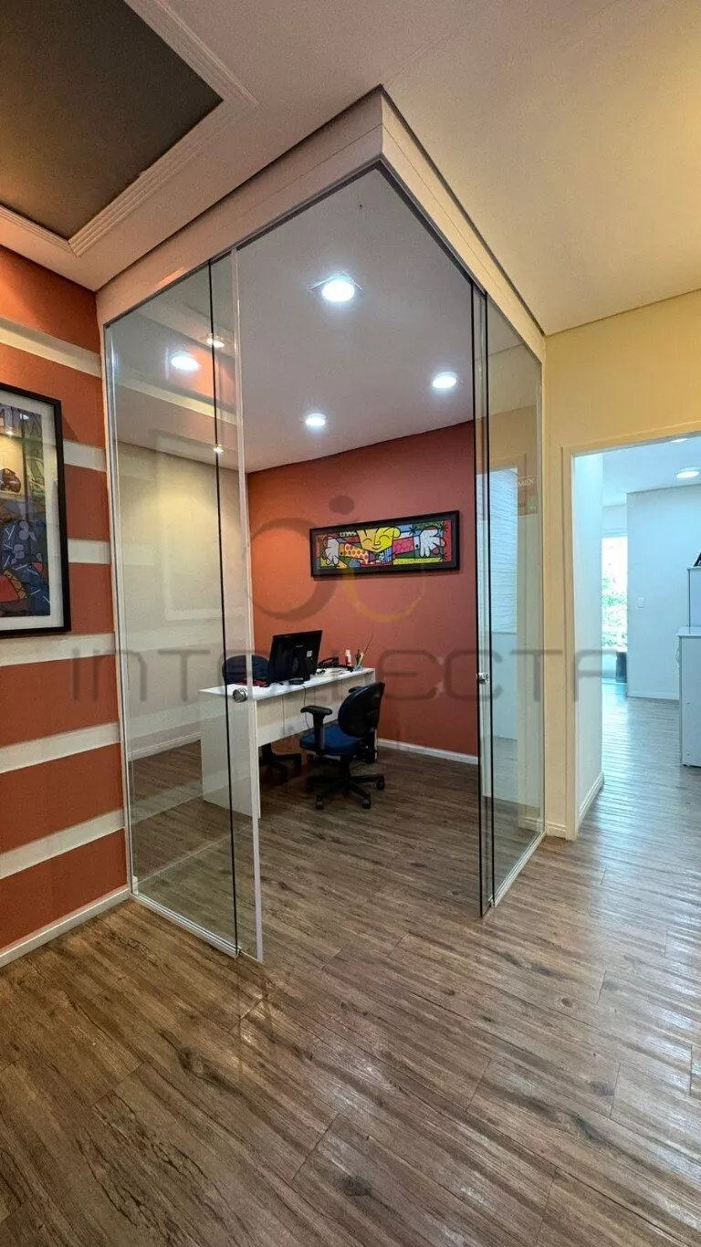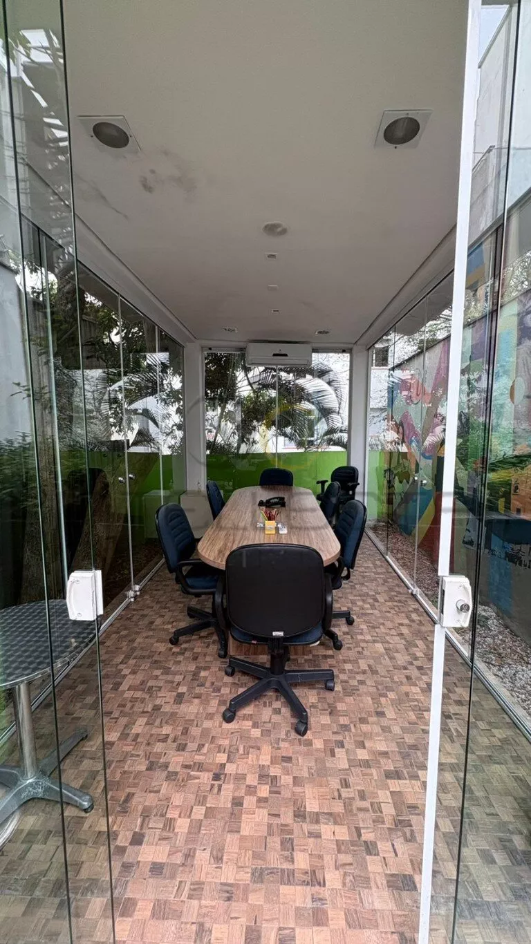 Além disso, possui uma sala de reunião toda em vidro, próxima ao quintal, trazendo iluminação natural, sensação de amplitude e um ambiente confortável e moderno para decisões importantes.
