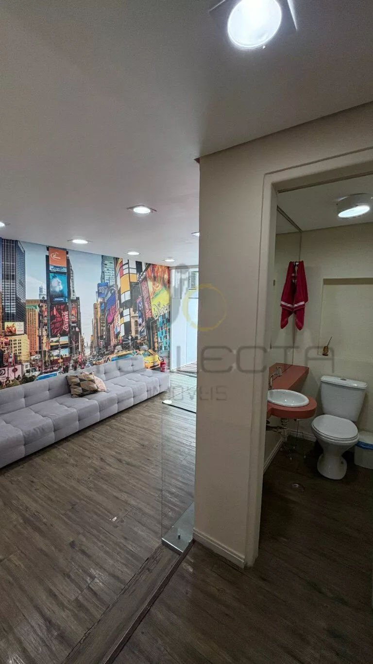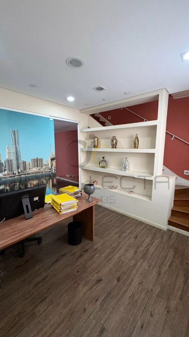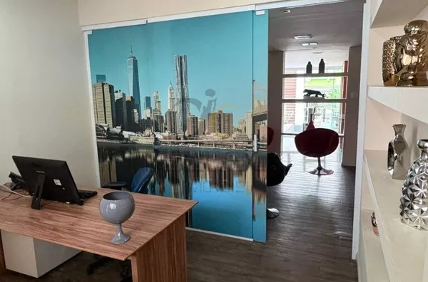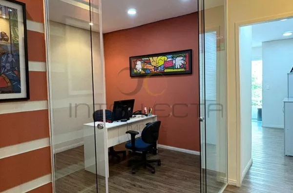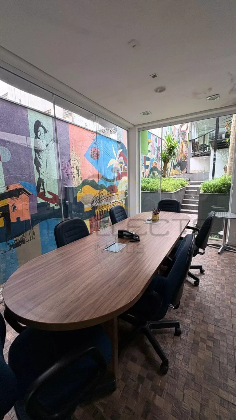 Além disso, possui uma sala de reunião toda em vidro, próxima ao quintal, trazendo iluminação natural, sensação de amplitude e um ambiente confortável e moderno para decisões importantes.