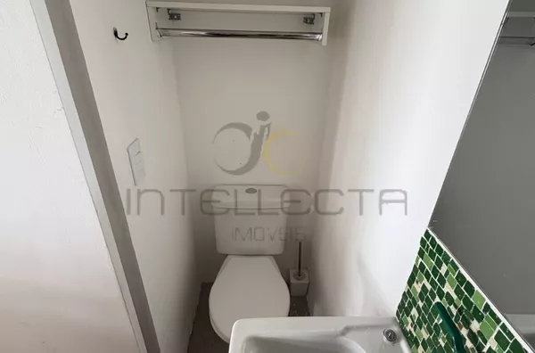 Sala para dois ambientes integrada à cozinha (conceito aberto), lavabo, sacada e pé-direito alto, trazendo mais luz e amplitude.