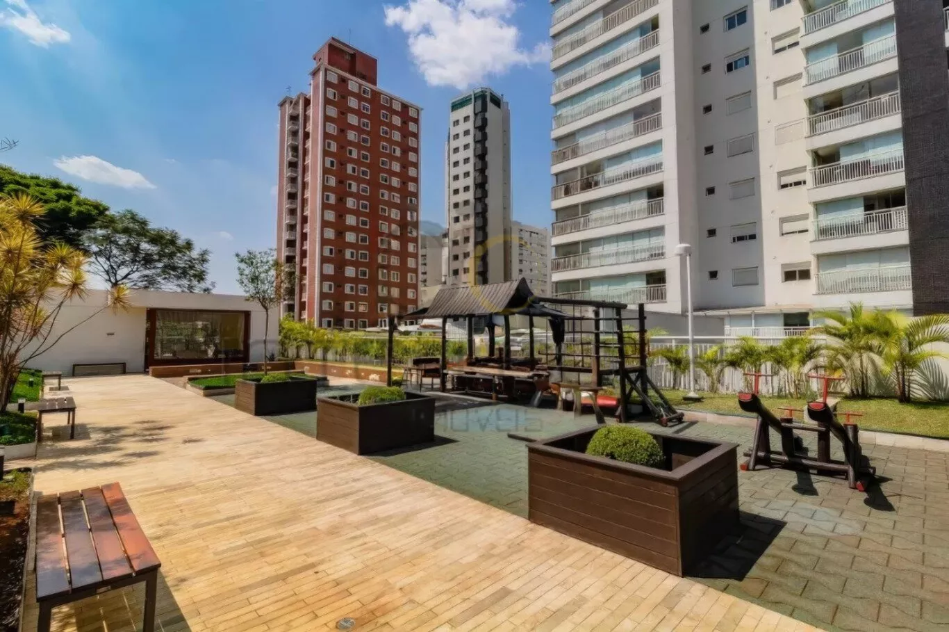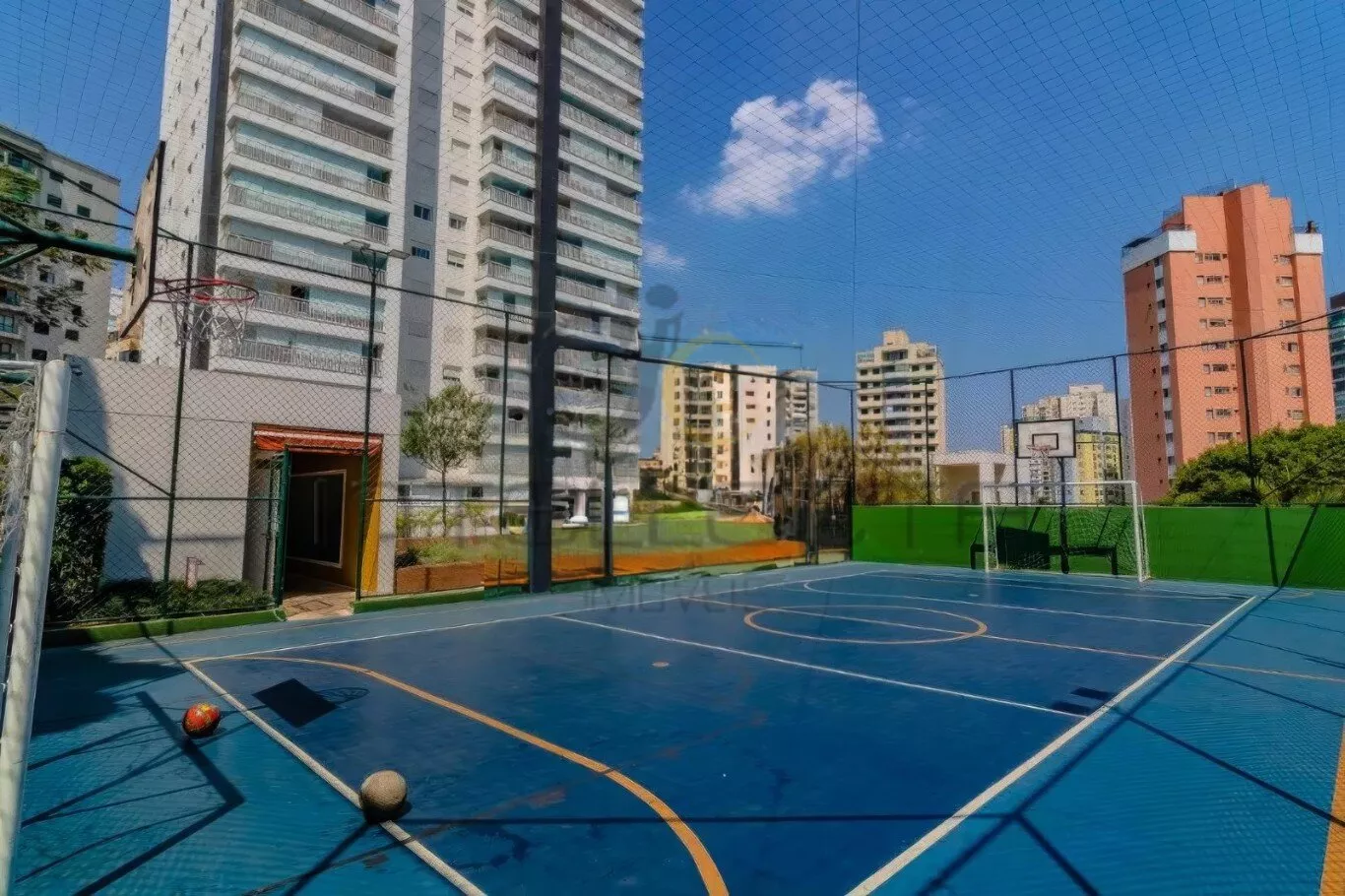 Quadra poliesportiva, playground e pet place